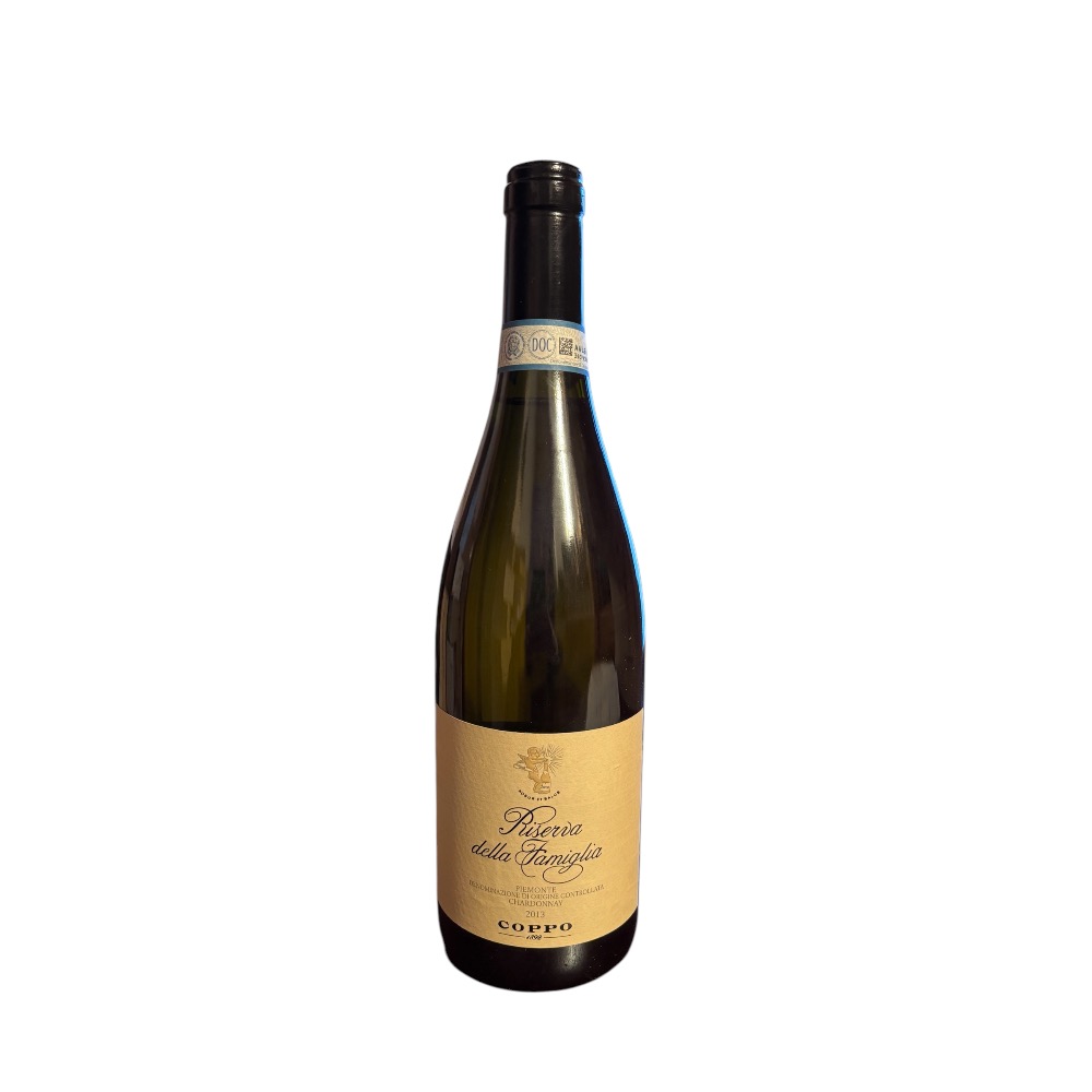 Particolarità: Lo Chardonnay “Riserva della Famiglia” nasce da un’unica vigna, situata ad Agliano, caratterizzata da una forte presenza di componenti minerali nel sottosuolo. Proprio la mineralità è la caratteristica saliente di questo Piemonte DOC, che ci fa scoprire le potenzialità dello chardonnay anche a distanza di diversi anni dalla vendemmia. Le uve raccolte dopo la vendemmia vengono pressate sofficemente, e il mosto così ottenuto fermenta in barrique per due settimane. Il vino rimane poi a maturare in barrique per 20 mesi, periodo in cui si effettuano diversi bâtonnage. Un’etichetta realizzata da Coppo solamente nelle annate eccezionali, con poche bottiglie, dedicata agli amanti dello chardonnay.